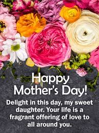 Delight in this day, my sweet daughter mothers day greetings. Mom surrounds with kindness, tenderness and care.